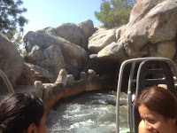 And now, back to the park for our final "G". Grizzly River Run at California Adventure. This is much like other water rides. Six passengers get in a round boat and float merrily along the river. But, oh my! There are rapids up ahead. The boat jostles about, the water splashes, and just when it gets calm again, watch out! We drop down thousands of feet to the pool below. (Well, maybe not thousands.)